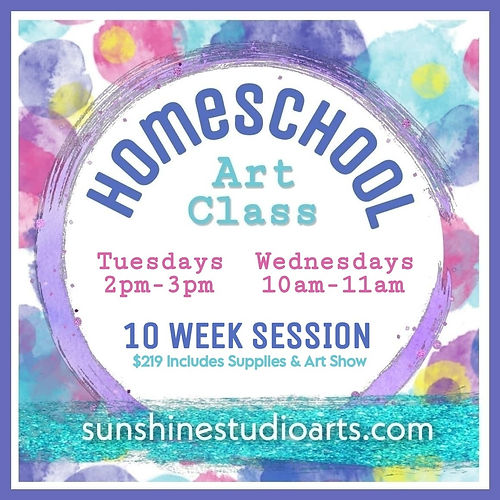 Note: This listing is for our Wednesday AM option, which meets from 10am to 11am. Our exclusive class for homeschool children offers a variety of 2D and 3D techniques and and mediums, including acrylic, watercolor, clay, pastels, mixed media, and more. 🎨❤️🌞 Please note that this class and our Tuesday Homeschool class will be completing the same projects. Our classes are all drop-off classes, however, you are welcome to wait in our play lounge until both you and your child are comfortable with your leaving them. Thanks! Ages 5 to 10 10 Week Class Session Art Show & All Supplies Included! $219 *If you have a child that is older than 10, they are welcome to attend this session; all activities will be modified depending on age. The age range is simply stated to allow kids to be with their peer group if desired. Our Shine On Student Art Show is scheduled for Saturday, November 15th from 9am-12noon.